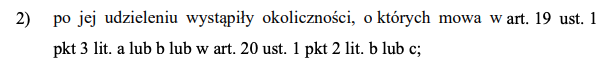 если после её предоставления возникли обстоятельства, указанные в ст. 19 ч. 1 пункте 3 (a или b) или в пункте 2 (b или c) части 1 ст. 20;
